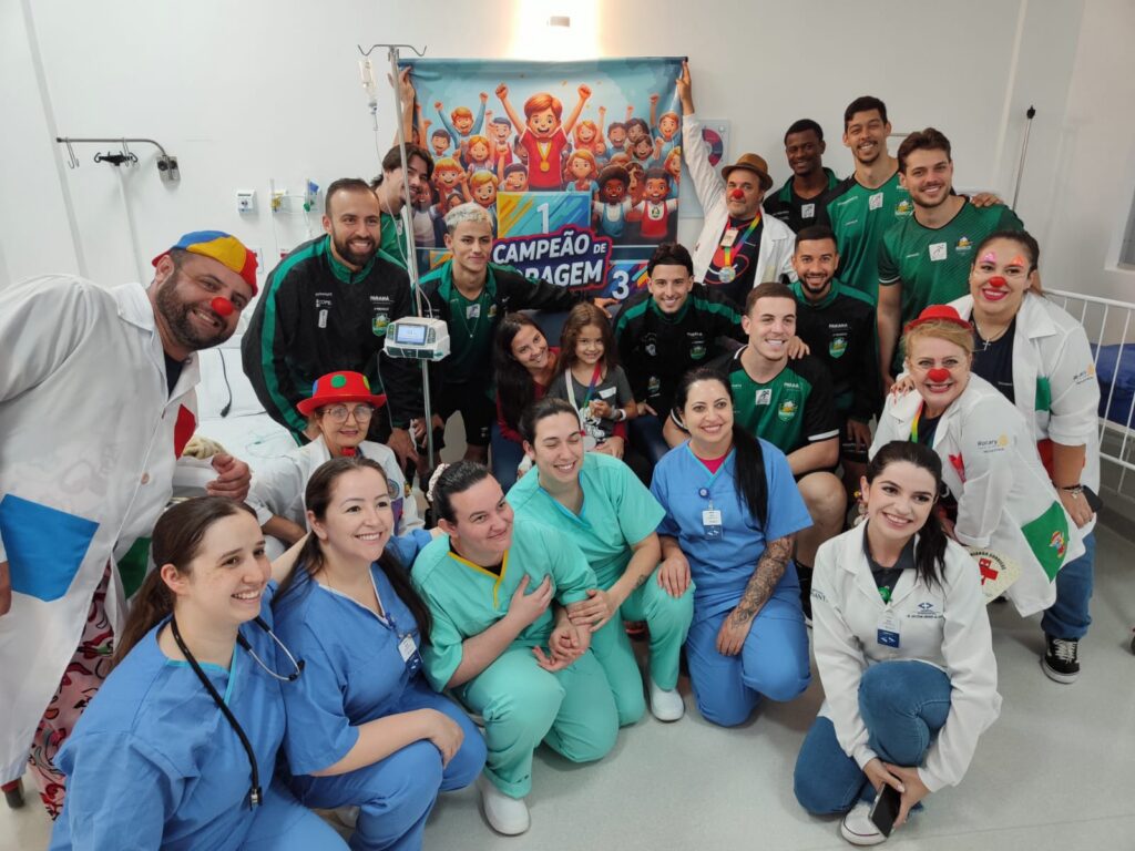 No fim da tarde de quarta-feira, 12, jogadores e diretores do Marreco Futsal estiveram visitando hospitais junto com o Grupo Semeando Sorrisos, desenvolvido pelo Rotary Club de Francisco Beltrão-Industrial, no projeto “Campeão de Coragem”. O propósito é fazer a diferença na vida de crianças em tratamento hospitalar.